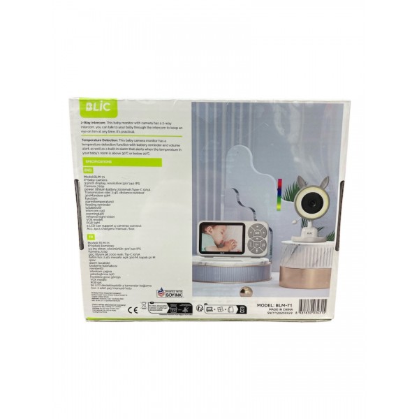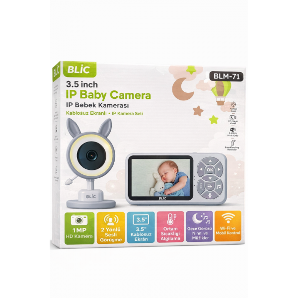 BLIC BLM-71 3.5” IP Bebek Kamerası | Kablosuz Monitörlü, Gece Görüşlü, 2.4GHz WiFi Baby Monitor